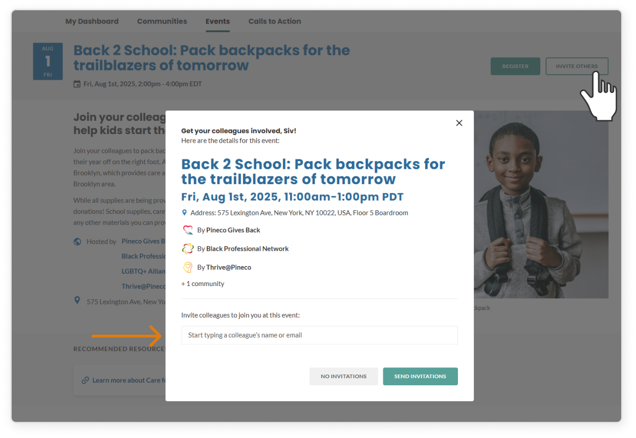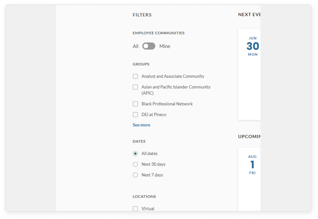 - Filter by Groups – Select one or more communities to only see events from those specific groups