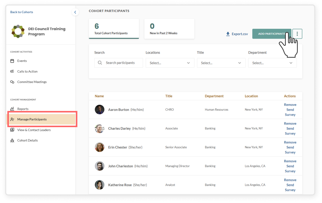 Assign a leadership team by adding one or more leaders who will help manage the cohort. If leaders have not been identified yet, add yourself or another point of contact in the meantime