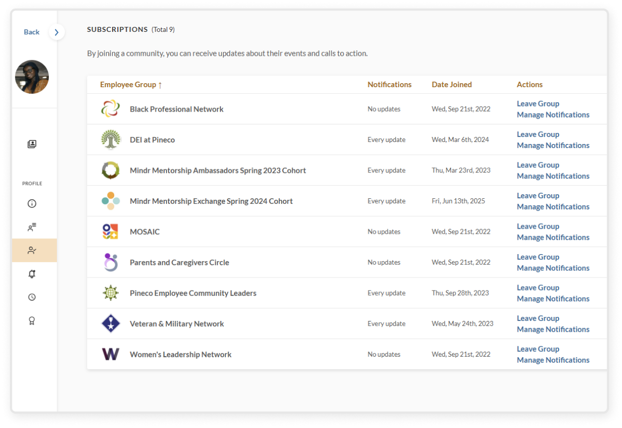- On this Subscriptions page, you will see a list of all of the communities you are subscribed to