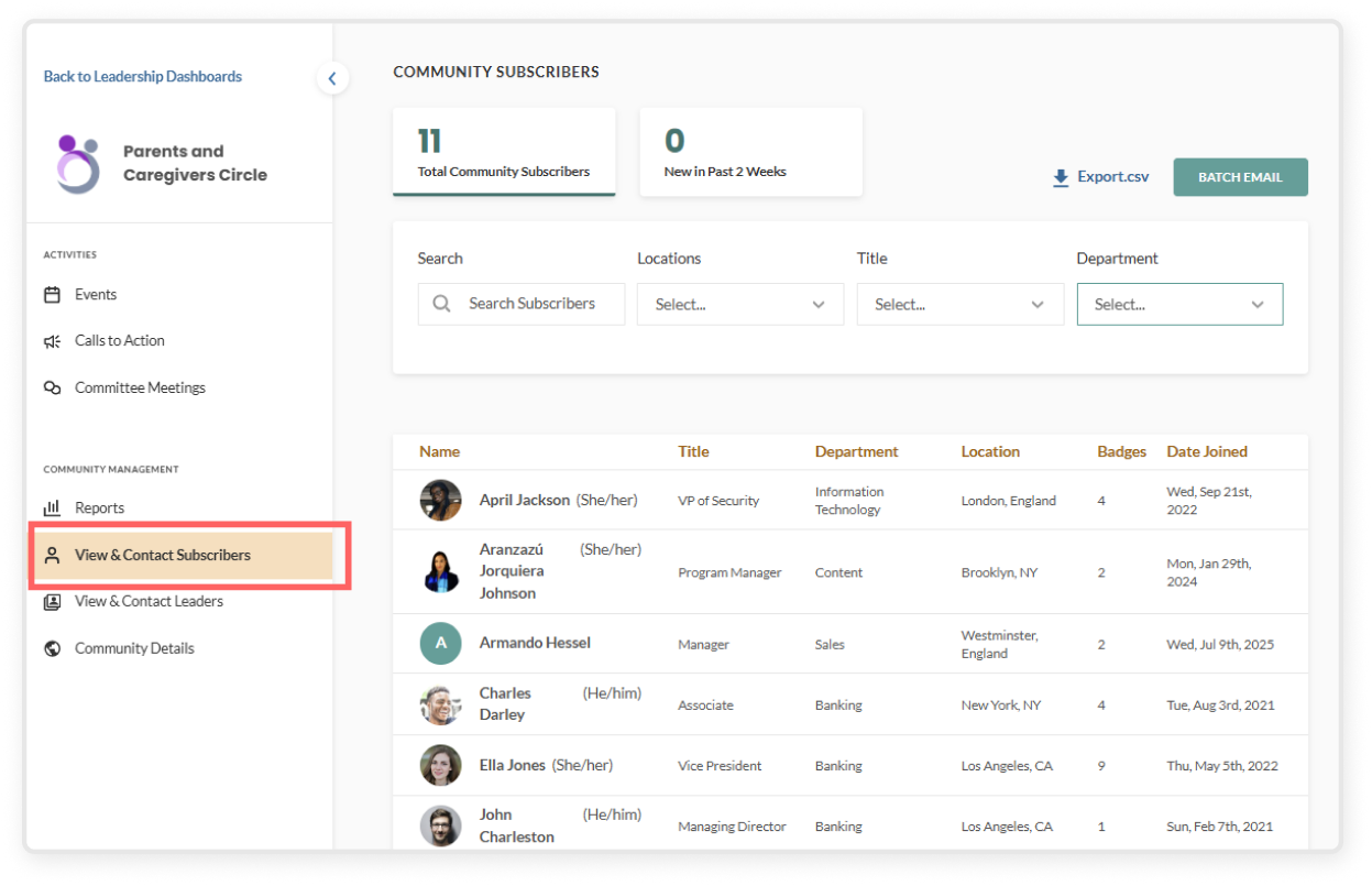 - Filter the subscriber list by locations, title, department, or even specific names if necessary