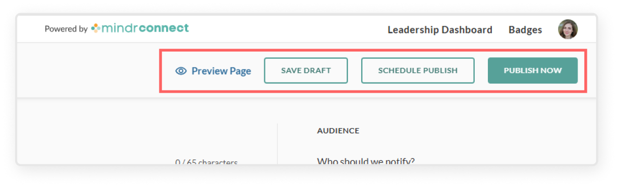 🔔 Note: You won’t be able to edit this audience after publishing, but you can notify another group by going to the three-dot kebab menu and selecting Send to Additional Audience
