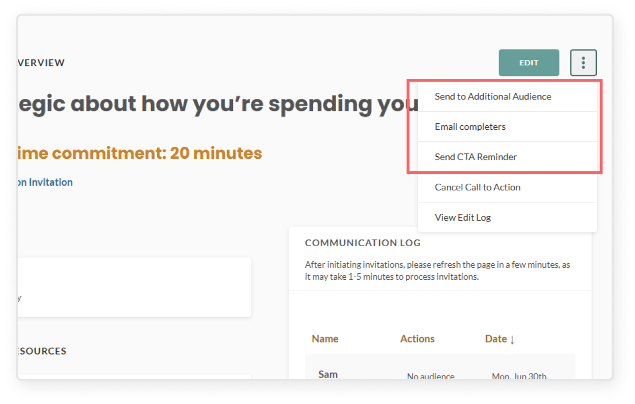 Send to Additional Audience – Target specific locations, job titles, or departments to invite additional users to your CTA