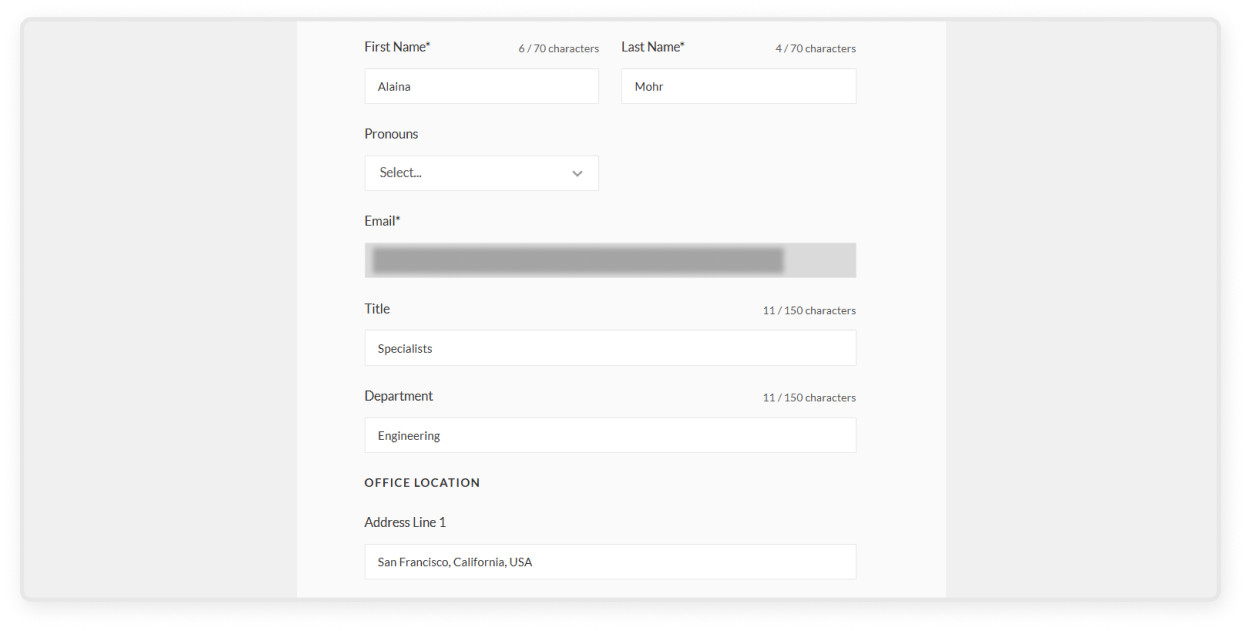 - On the My Information page, you can edit your name, pronouns, title, department, and location